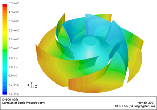 “叶轮机械三元流动理论”把叶轮内部的三元立体空间无限的分割,通过对叶轮和流道内各工作点的分析,利用k-ε双方程建立数学模型,采用N-S方程和MRF方程进行网格划分和流场计算。依据三元流动理论设计出来的叶片形状为不规则的曲面形状,叶轮叶片的结构可适应流体的真实流态,能够控制叶轮内部全部流体质点的速度分布,应用三元流动理论设计的流体机械,运行效率得以显著提高。